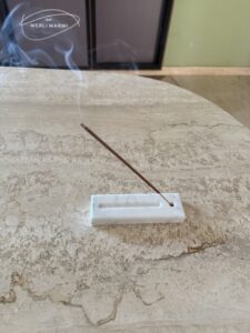 Da questa visione è nato un porta-incenso in marmo Bianco Carrara, ideato, progettato e confezionato come un dono che racchiude memoria, cura e significato.